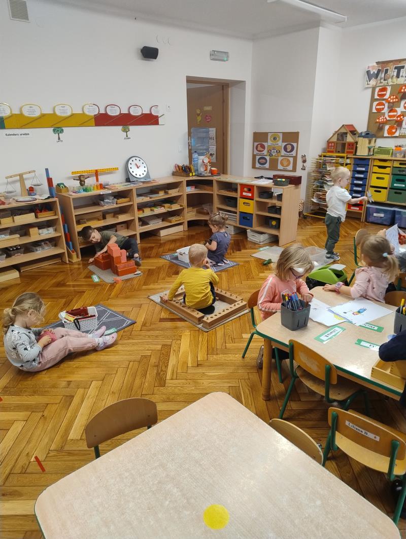 - tzw. przygotowane otoczenie - sale zorganizowane zgodnie z zasadami Montessori,