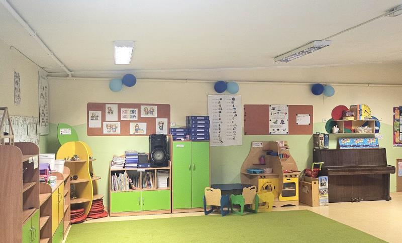 - W każdej sali stworzone są kąciki zainteresowań, dzięki którym dzieci podczas zabawy rozwijają swoje umiejętności.